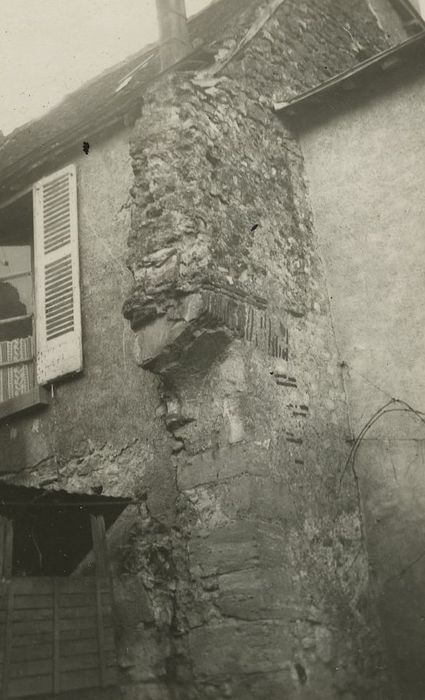 De l'édifice d'origine, sans doute un gîte d'étape romain, subsistent deux murs perpendiculaires encastrés dans des constructions modernes. Tous deux présentent un arc en plein cintre dont les deux rouleaux sont constitués par des claveaux de pierre alternant avec des claveaux composés de deux briques séparées par un lit épais de mortier. L'arrachement du mur sud présente des éléments du clavage d'une autre arcade dont le niveau semble avoir été celui de l'arc du mur ouest.