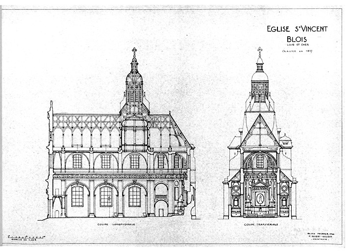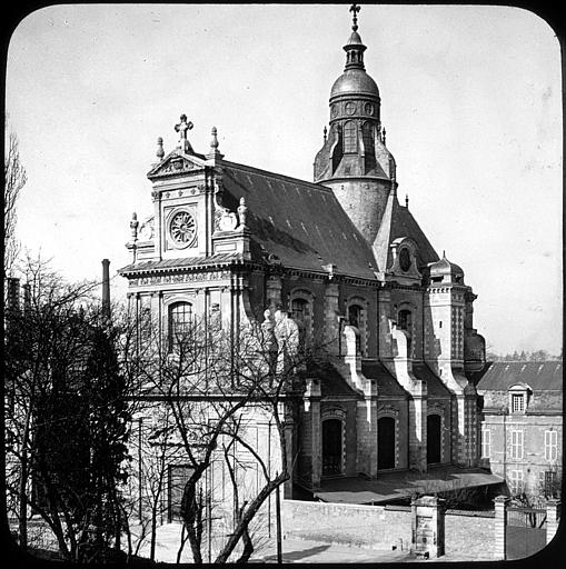 L'église a été commencée en 1626 et achevée en 1677 après une longue interruption dans les travaux. Les plans auraient été conçus par François Mansard qui dirigeait alors la construction du château de Blois, ordonnée par Gaston d'Orléans. Cependant, quelques dessins de la bibliothèque de Quimper permettent de croire qu'un architecte jésuite, le père Martilange, ne fut pas étranger à cette construction. Jusqu'en 1764, cet édifice servit de chapelle au collège des Jésuites pour lequel il avait été construit. Pendant la Révolution, il devint Temple de la Liberté et, en 1826, église paroissiale. £C'est un monument de dimensions restreintes. Sur sa façade se trouvent les trois ordres classiques superposés. A l'intérieur, la disposition générale et la décoration obéissent à une ordonnance dorique. Le choeur est très richement décoré. De chaque côté du maître autel se trouvent deux monuments élevés par Mlle de Montpensier à la mémoire de Gaston d'Orléans.