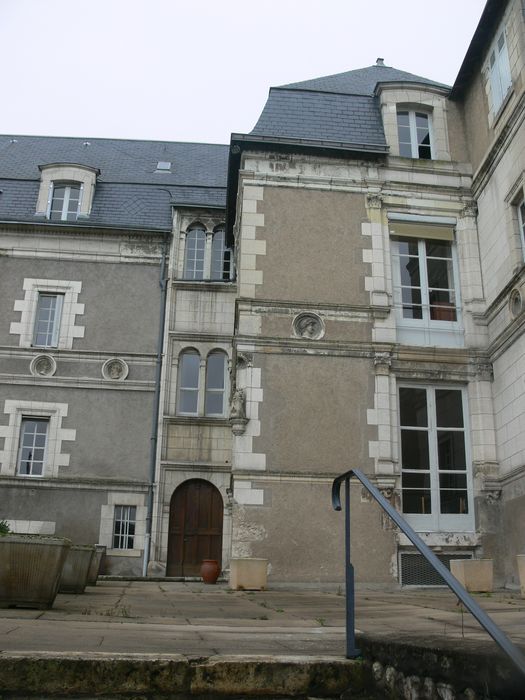 La façade sur jardin se compose de deux bâtiments réunis par un escalier éclairé par des fenêtres jumelées en plein cintre. Toutes les baies sont encadrées de moulures encore gothiques (de l'extrême fin du 15e siècle) amorties par des culots sculptés. L'ensemble de la façade est néanmoins de style Renaissance, du 16e siècle. Une série de médaillons sculptés orne la frise qui sépare les deux étages du bâtiment.