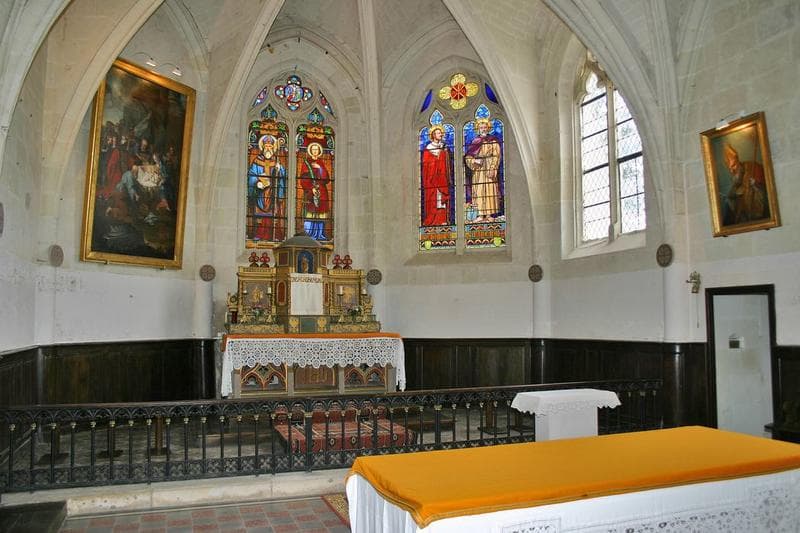 Une nef moderne aboutit à un choeur et à une abside du 15e siècle. L'abside à cinq pans est voûtée sur quatre branches d'ogives. Chaque pan est ajouré de fenêtres à réseau flamboyant.