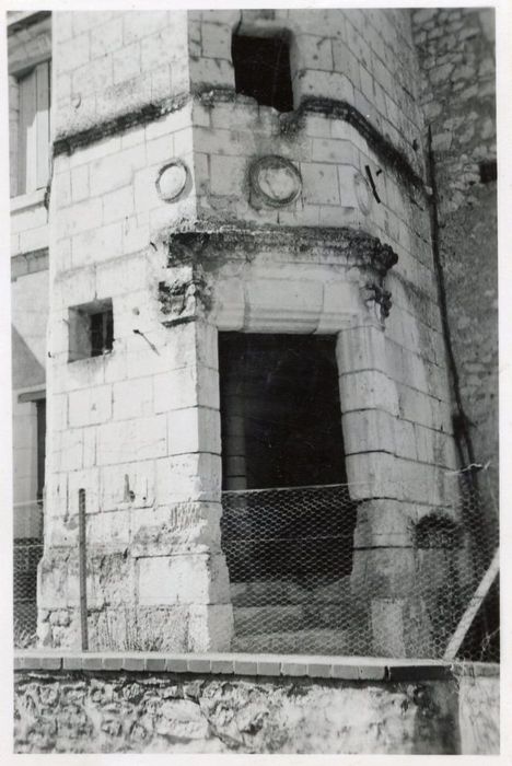 Manoir adossé, par sa façade nord, au flanc du coteau. Sur sa façade sud fait saillie une tour polygonale contenant une vis de pierre, et dont les étages sont soulignés par des cordons moulurés. Des médaillons surmontent la porte d'accès à cette tour, porte accostée de pilastres Renaissance supportant un entablement. Au premier étage de la travée ouest, la fenêtre est également accostée de pilastres Renaissance. Au rez-de-chaussée de la travée opposée, une porte cochère en anse de panier donne accès à un large couloir conduisant aux caves creusées dans le coteau.