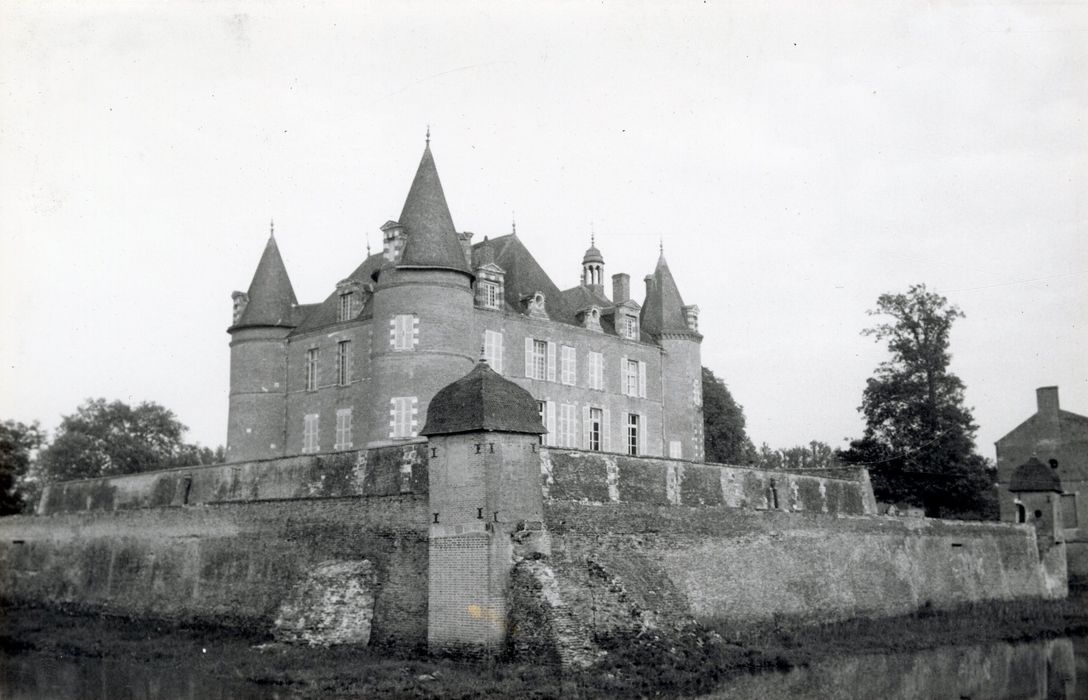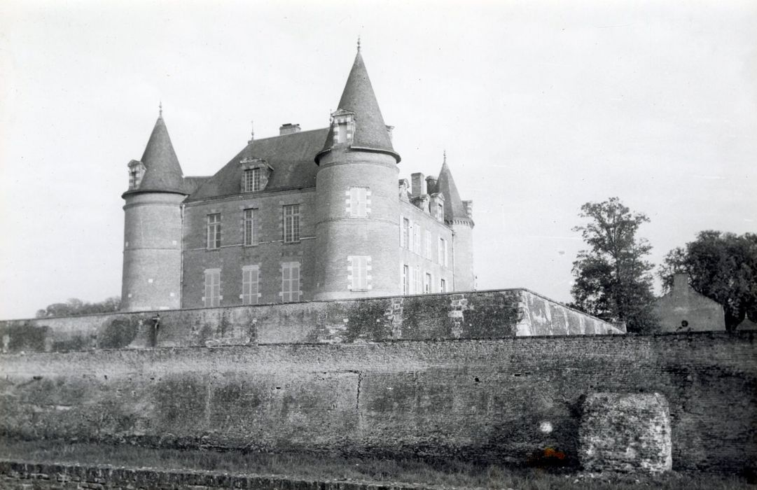 Une motte est attestée dès 980. Le château actuel garde encore l'aspect d'une maison-forte dont la motte aurait été nivelée en une succession de deux terrasses. Du château médiéval subsiste le soubassement de deux tours au pied de la façade principale, datant de la fin du 14e ou du début du 15e siècle. Vers 1520, le château fut agrémenté d'une façade aux percements sculptés de grotesques et de médaillons. A la même époque, adjonction de deux tours rondes. Ruiné en 1562, le château connaît d'importants remaniements entre 1630 et 1650 : création d'un avant-corps, de tourelles polygonales, de deux ailes basses disparues en 1832 et qui s'appuyaient autrefois sur la première terrasse. Les dépendances et les échauguettes remontent également à cette période. Au 19e siècle, la terrasse sur l'avant-cour fut modifiée dans le style néo-gothique. L'avant-corps central aurait été reconstruit après la Seconde guerre mondiale. A l'intérieur, une salle conserve un plafond à la française orné d'un décor peint du 17e siècle.