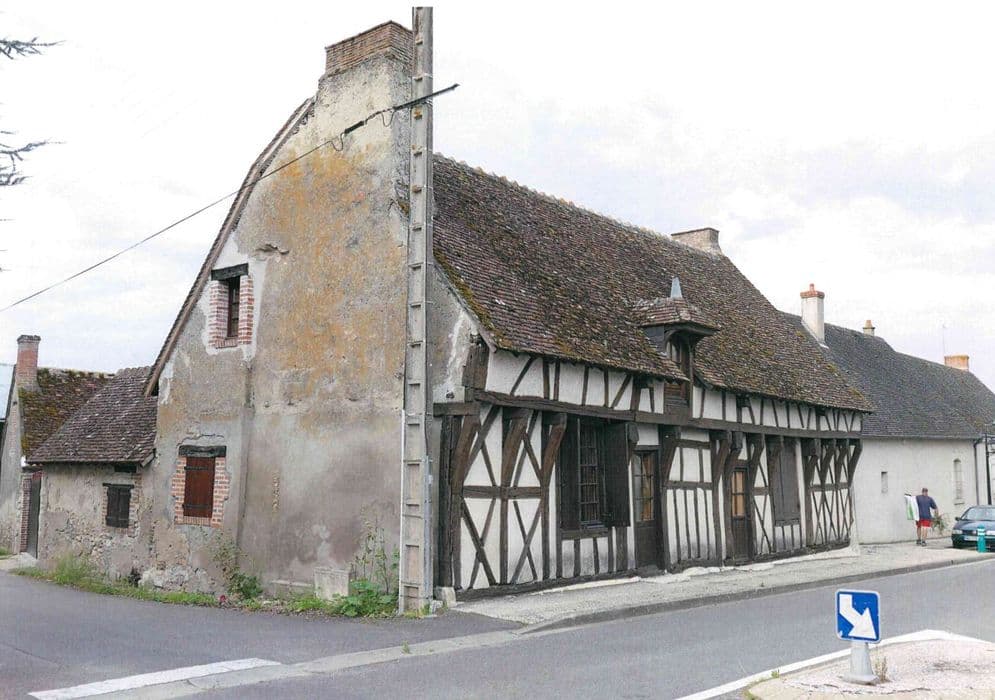 Maison solognote en pans de bois avec remplissage en torchis. Le comble en encorbellement est soutenu par deux corbeaux en bois. La façade est à croix de Saint-André de chaque côté, et en pans de bois au centre. A la suite se trouve une vieille grange en lattis enduit. D'après la tradition, cette maison dépendait de l'église et fut construite, avec d'autres, pour loger les ouvriers qui travaillèrent à la construction ou à la restauration de l'église.