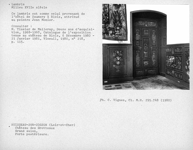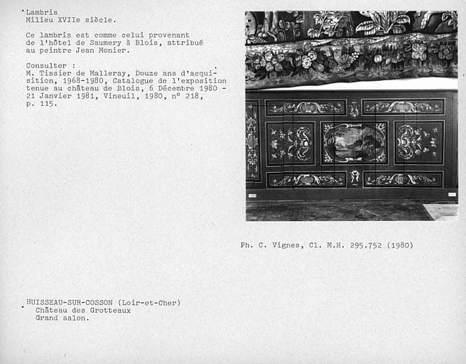© Monuments historiques, 1992. Cette notice reprend intégralement les termes de l’arrêté de protection au titre des Monuments historiques. Elle répond à l’obligation réglementaire du ministère de la Culture d’établir la liste générale des immeubles protégés (art. R. 621-80 du Code du patrimoine). Elle est donc opposable et fait foi juridiquement. Aucune copie numérique ou papier ne sera fournie par courrier ni courriel. Le dossier de protection complet et l’arrêté sont consultables uniquement sur place, dans la salle de lecture de la Médiathèque du patrimoine et de la photographie (MPP), à Charenton-le-Pont (Val-de-Marne).