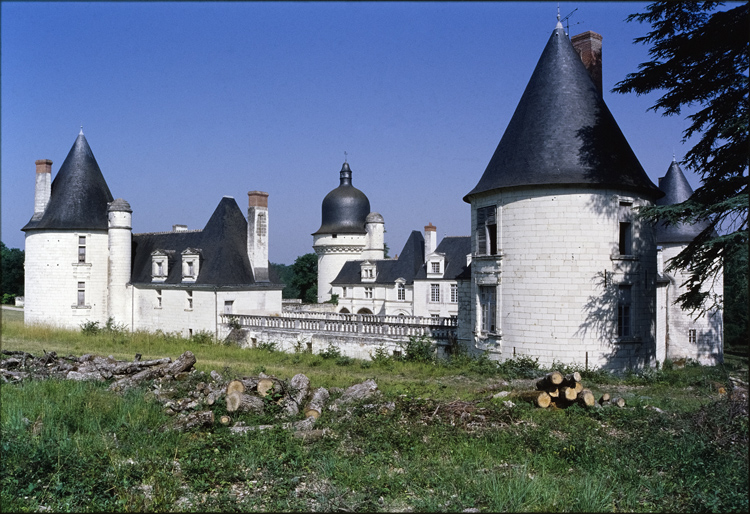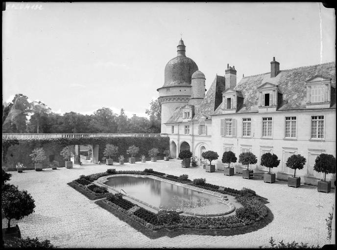 La construction du château commence en 1543 pour se terminer en 1573. L'édifice présente un plan carré féodal avec quatre tours rondes aux angles, des bâtiments sur trois côtés et est flanqué, du côté de l'entrée, de deux tours rondes dont il ne reste que la partie inférieure. La tour ouest est surmontée d'un chemin de ronde décoratif reposant sur de faux mâchicoulis. Un pavillon en retour fait, de chaque côté, un décrochement s'alignant sur les ailes en retour du bâtiment principal. A l'est, le château est relié au pavillon et au bâtiment Henri II par une galerie tardive. Cette partie est traitée en orangerie. Au sud-est du château se trouve le quadrilatère fermé des dépendances.