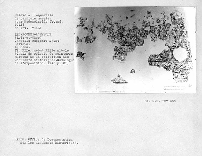 © Monuments historiques, 1992. Cette notice reprend intégralement les termes de l’arrêté de protection au titre des Monuments historiques. Elle répond à l’obligation réglementaire du ministère de la Culture d’établir la liste générale des immeubles protégés (art. R. 621-80 du Code du patrimoine). Elle est donc opposable et fait foi juridiquement. Aucune copie numérique ou papier ne sera fournie par courrier ni courriel. Le dossier de protection complet et l’arrêté sont consultables uniquement sur place, dans la salle de lecture de la Médiathèque du patrimoine et de la photographie (MPP), à Charenton-le-Pont (Val-de-Marne).