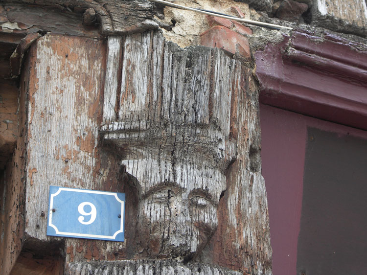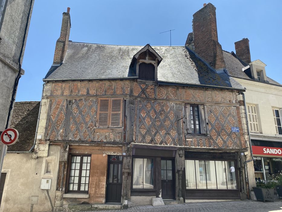 Habitation de la fin du 15e ou du début du 16e siècle, ouverte au rez-de-chaussée par trois boutiques. Les boutiques sont séparées par des colonnettes moulurées sur lesquelles viennent buter les moulures de la sablière portant l'encorbellement du premier étage, et s'amortissant par des culots sculptés. La façade est formée de pans de bois avec remplissage en briques.