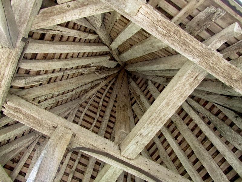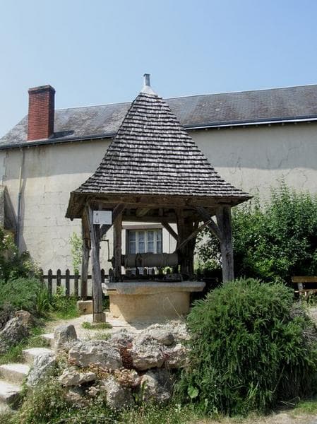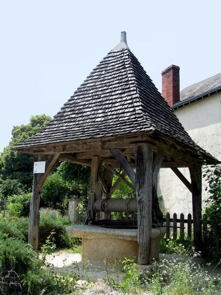Puits recouvert d'un abri en charpente en petites tuiles de bois. L'écho qu'il émet est d'une grande netteté.