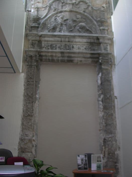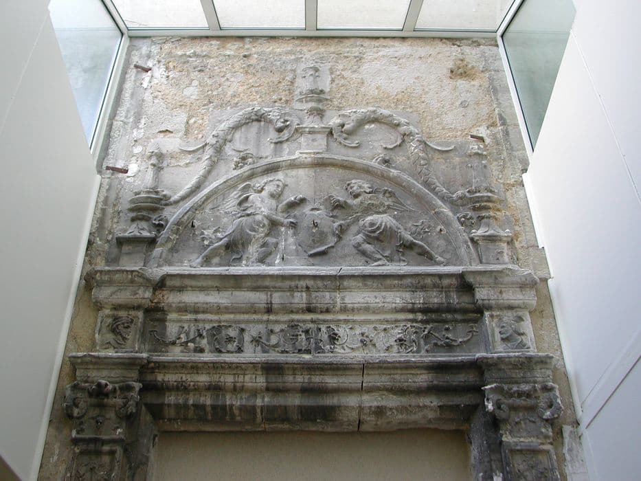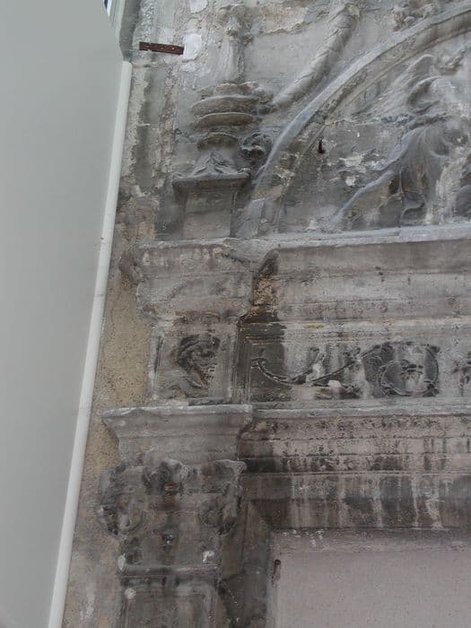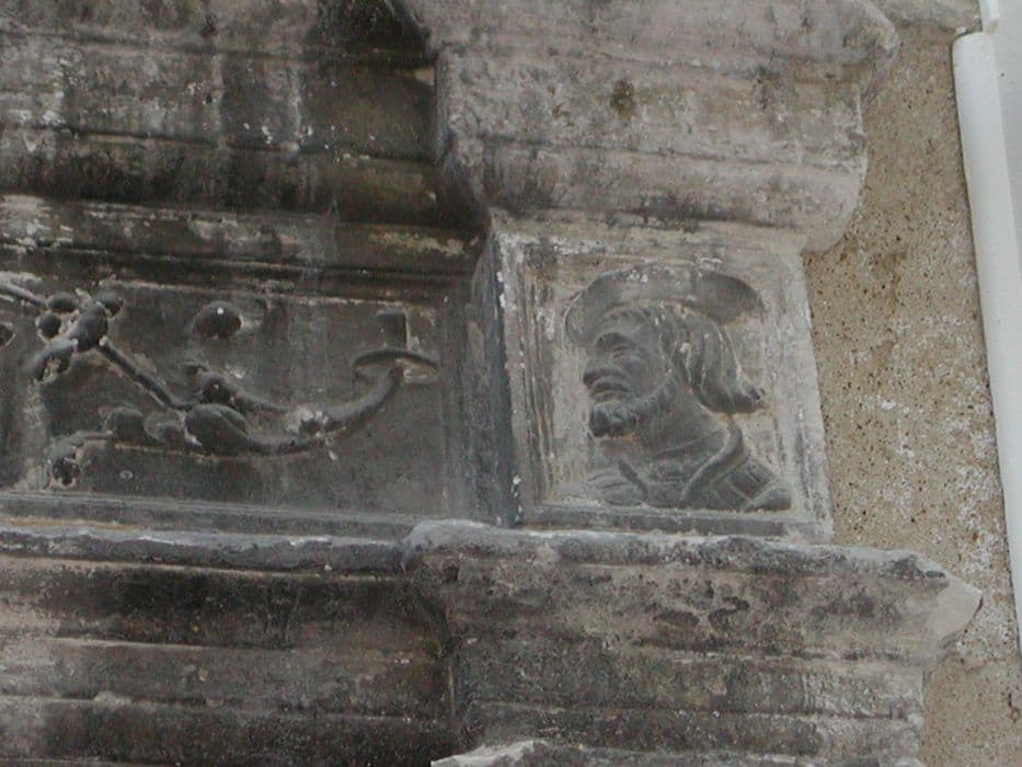 La maison s'ouvre par un portail Renaissance avec encadrement orné de pilastres sculptés avec chapiteaux également sculptés. A la partie supérieure, bandeau décoré d'arabesques avec, de chaque côté, des tête sculptées. Au-dessus, fronton demi-circulaire avec motif décoratif (anges ou amours tenant un écusson). Le tout est surmonté d'une guirlande ou corne d'abondance. Des fleurons couronnent l'ensemble.