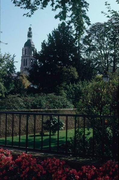 Cette tour est ce qu'il reste de l'église paroissiale des 15e et 16e siècles. Cette église avait été transformée en halle à la fin du 18e siècle. A la suite de l'écroulement d'une grande partie de la nef, elle a été complètement démolie en 1857. Ont été conservés les façades méridionale et occidentale, ainsi que la tourelle d'escalier, l'étage du beffroi et toute la partie supérieure.