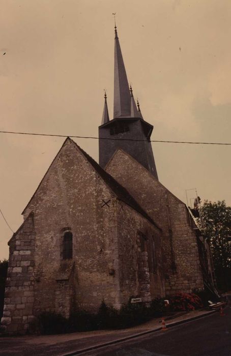 Edifice de plan rectangulaire, terminé par un choeur à chevet plat. Ce dernier est la partie la plus ancienne de l'église, remontant sans doute au 11e siècle. La nef est également d'époque romane mais elle a été transformée à la fin du 15e siècle. En 1704, élévation du porche et du beffroi. La division de l'église intervient sans doute lors de la réfection du beffroi entreprise en 1928. Pour cacher la base du beffroi, un mur en briques et plâtre, percé d'un arc triomphal, est élevé entre la 4e et la 5e travée de la nef, fermant le chevet. Le choeur s'est alors trouvé sous le beffroi.