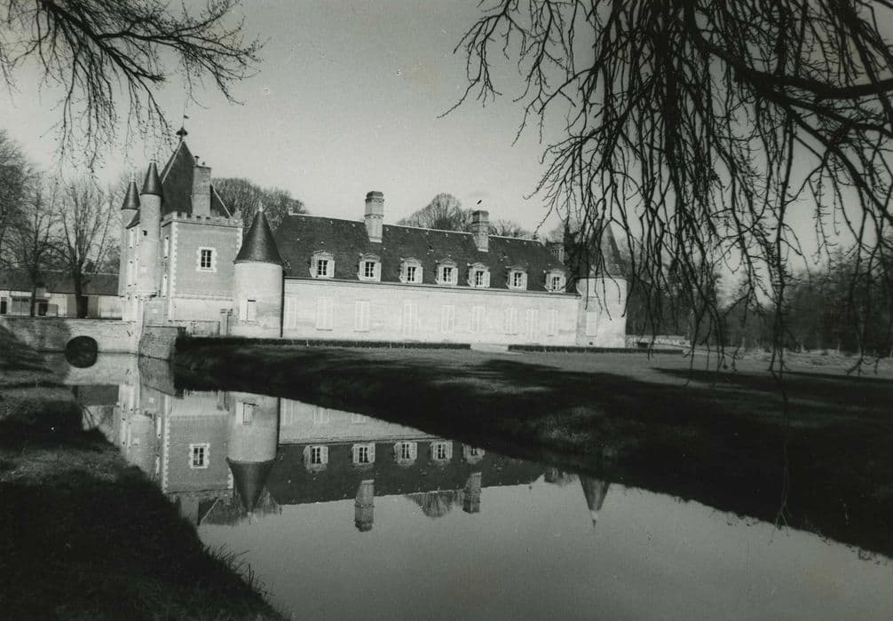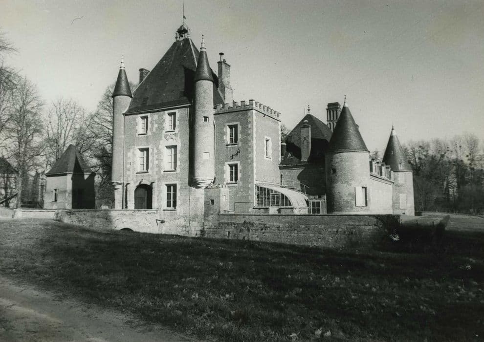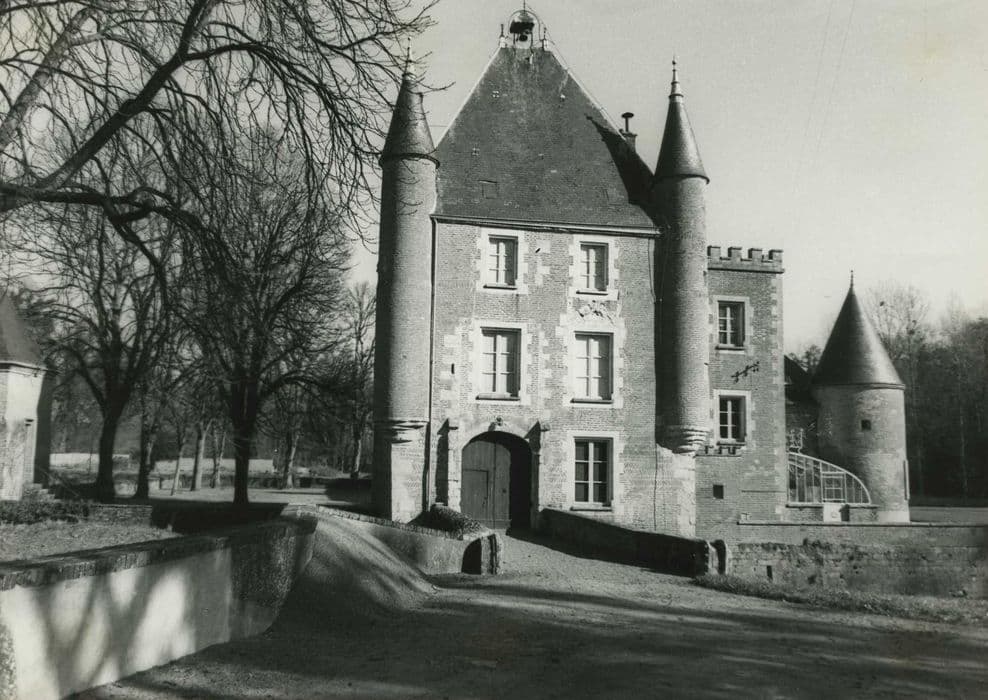 Il existait au Moyen Age un château dont l'emplacement est incertain et qui fut probablement détruit lors de la guerre de Cent ans. Nicolas de Harlay, grand dignitaire de la cour de Henri III et Henri IV, fit construire le château actuel. L'accès se fait par une allée d'arbres conduisant à la façade de briques roses. La construction comprend un donjon carré de deux étages (fin 16e siècle) et un corps de bâtiment qui lui est accolé en équerre au sud (début du 17e siècle). Les douves forment un canal rectangulaire, entourant également la cour au nord et la pelouse au sud. L'entrée se fait par le donjon, précédée d'un pont de pierre ayant remplacé le pont-levis. La façade extérieure du donjon est flanquée de deux tours en poivrière. Un grand portail en anse de panier donne accès au vestibule qui occupe la base du donjon, et débouche dans la cour par un portail identique. La façade sur cour présente à peu près la même ordonnance, moins les tourelles. Le côté nord de la cour était occupé, à l'origine, par les communs qui ont été reportés, au 19e siècle, au-delà de la douve, rejoignant les écuries et le colombier. Au 19e siècle, une tour carrée et crénelée a été accolée à la façade sud du donjon.