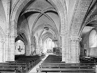 La nef et les bas-côtés de cette église du 13e siècle ont conservé leurs dispositions d'origine. Chapiteaux à feuillages de la même époque.