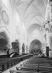 Cette église, ancienne collégiale, se compose d'une nef, de deux bas-côtés et d'un clocher de la fin du 15e siècle avec certaines parties du 16e. Le second bas-côté sud a été ajouté en 1622 et l'abside date de 1860. L'ancienne salle capitulaire, du début du 16e siècle, sert de sacristie. Les bas-côtés possèdent encore leurs voûtes en maçonnerie. La nef a été voûtée en briques à plat en 1860. Les arcs doubleaux et diagonaux du bas-côté nord ont leurs retombées sur des culs de lampe sculptés, les uns de l'époque Louis XII, les autres de celle de François Ier. Le chevet se terminait primitivement par un pignon carré percé d'une grande baie à fenestrage dans sa partie supérieure. Des amorces d'arcs-boutants et pinacles existent sur les façades de la nef. La voûte du clocher avec formerets, nervures et tympans de pierre possède encore la retombée des diagonaux des culs de lampe Louis XII représentant les quatre Evangélistes.