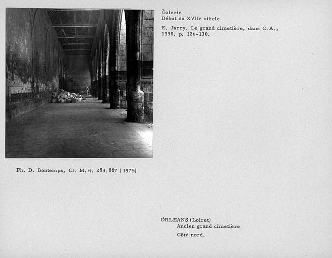 Le cimetière est situé au nord de la cathédrale et fut désaffecté en 1786. Cinquante arcades des 16e et 17e siècles sont réparties sur trois faces d'un vaste espace, la cathédrale dominant le quatrième côté. La galerie Est subit de fortes restaurations sur sa façade en 1824 et reproduit la construction précédemment ruinée, avec reconstitution des arcs en tiers-point. Elle donne accès à une chapelle du 16e siècle. Un portail Renaissance donnait accès au cimetière. Le gouvernement impérial puis la Restauration utilisèrent ces arcades comme écuries. Avec la construction de la halle aux blés, les galeries furent transformées en resserres et greniers.
