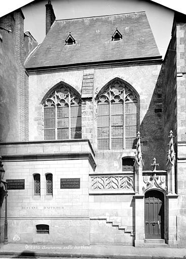 Cette salle, seul vestige de l'ancienne université d'Orléans, était en fait la librairie (bibliothèque). Elle a été construite entre 1411 et 1417. Le décor a été très restauré au 19e siècle.