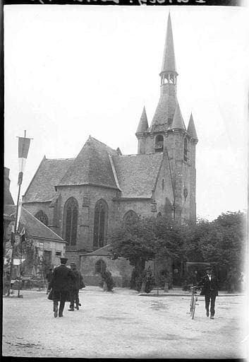 Eglise à trois nefs dont la construction s'étend du 13e au 15e siècle. Les retombées des voûtes s'appuient sur des culots sculptés de feuillages et de personnages. Le clocher, dont les encorbellements forment bases de tourelles aux angles.