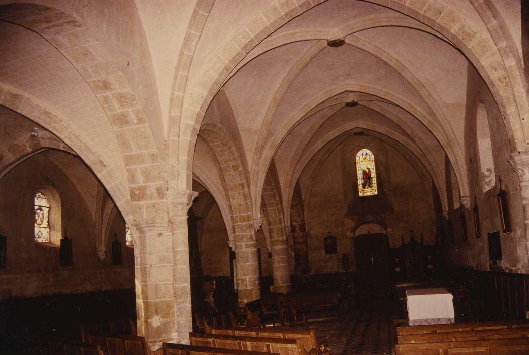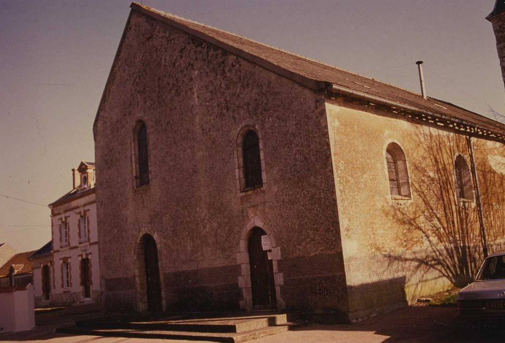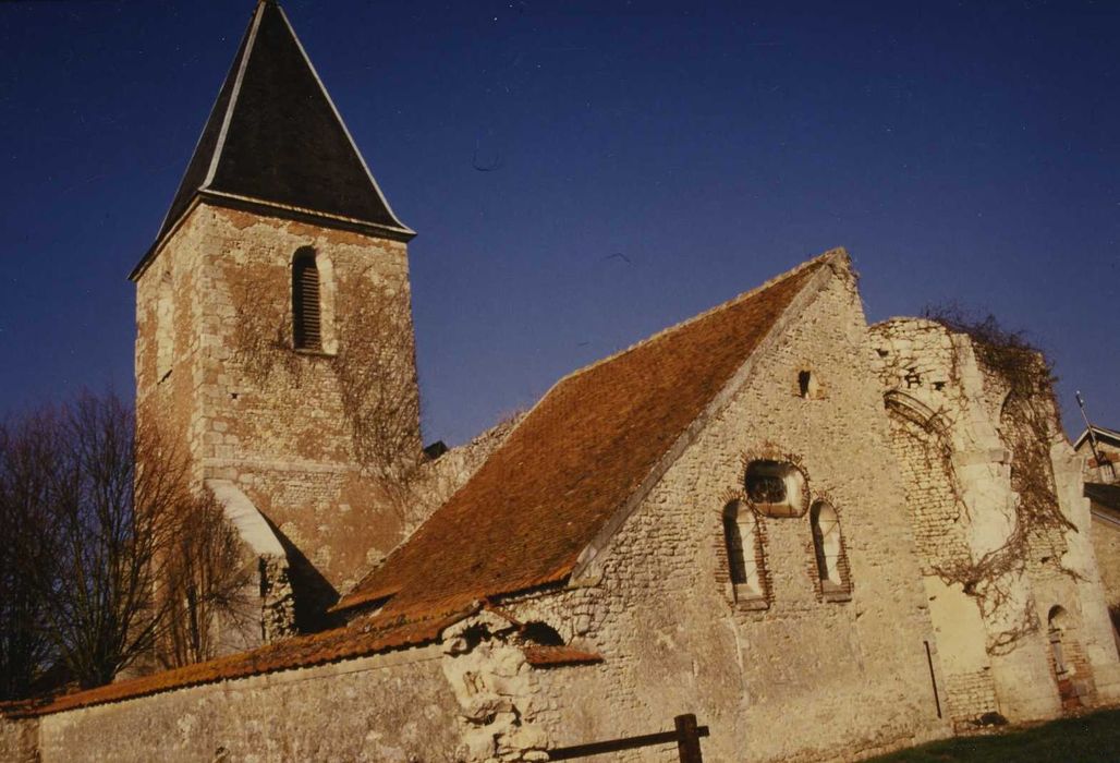 L'église remonte au début du 13e siècle. A partir de 1406, Blanchet de Braque entreprend l'agrandissement de l'édifice, prévoyant un choeur polygonal à déambulatoire, jamais achevé. Au 17e siècle, Charles de Birague fait construire une chapelle ornée d'un décor peint dédiée à saint Hubert et sainte Appoline qui attiraient encore les pélerinages locaux au 19e siècle. A la fin du 19e siècle, l'église paroissiale fait l'objet de travaux : les trois premières travées de la nef et du bas-côté sont voûtées en brique et plâtre ; reprise du dallage et des baies. L'église présente un plan rectangulaire avec un clocher carré flanquant, au sud-est, le bas-côté. Elle se prolonge par un choeur polygonal inachevé. La chapelle Saint-Hubert, rectangulaire à chevet plat, s'élève au sud du choeur polygonal.