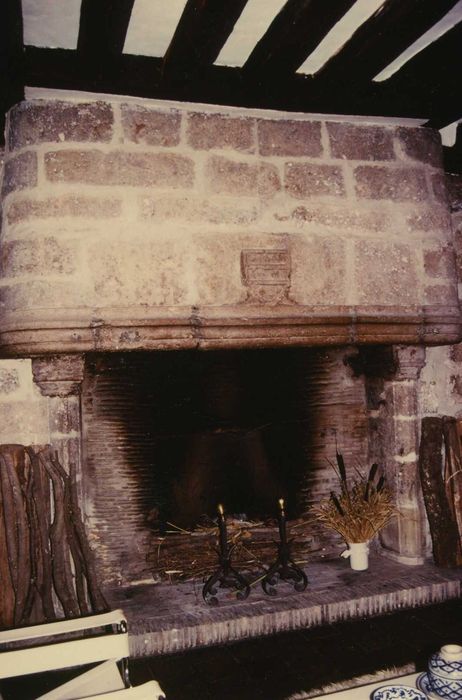 Tour d'angle ; cheminée armoriée au rez-de-chaussée ; escalier en vis (cad. ZD 388) : inscription par arrêté du 13 mars 1991