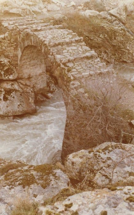 Pont en dos d'âne destiné aux piétons et troupeaux, reliant Asco aux pâturages du massif du Cinto par les pistes traditionnelles. Constitué d'une arche en plein cintre et d'un tablier avec pas d'âne saillants. La sous-couche du tablier est en grosses dalles de schiste bleu. La couche de finition était constituée de galets roulés, noyés dans un bain de chaux.