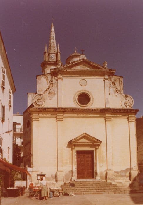 En raison de l'accroissement de la population, Calvi édifia l'église dans la Ville basse. La construction ne fut achevée qu'à la fin du 19e siècle par manque de financement. L'édifice comporte une façade principale scandée de pilastres et couronnée par un fronton triangulaire. D'épaisses corniches séparent chacun des niveaux de la façade percée d'un oculus et d'une porte à deux vantaux. L'édifice est surmonté d'une coupole hexagonale à lanternon, soutenue par d'épais pilastres. Des chapelles rayonnantes s'articulent autour du noyau central. Cet édifice témoigne de l'art néo-classique insulaire.