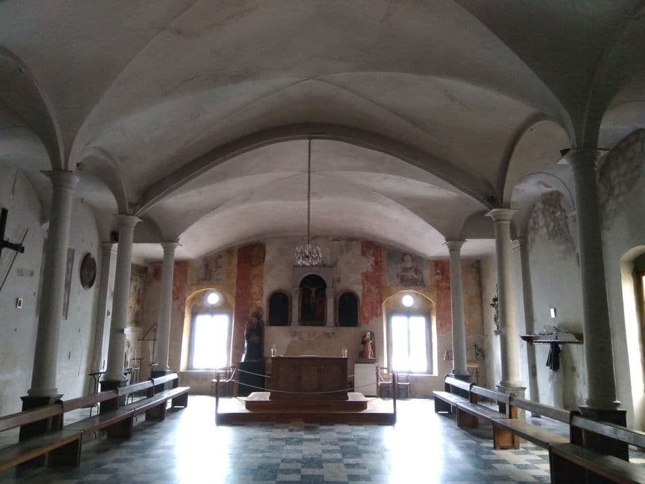 Edifice de la fin du Moyen-Age abritant les exercices de piété de la confrérie Saint-Antoine, et autrefois ceux de la confrérie de l'Annonciation, destinées à l'entraide mutuelle entre confrères en cas de maladie, décès, captivité... C'est une chapelle rectangulaire dont la voûte de la nef principale surbaissée, repose sur des pilastres. Un bas-relief du 16e siècle orne l'architrave et représente Saint-Antoine entouré, à gauche, par Saint-Jean-Baptiste et des pénitents ; à droite, par Saint-François. Une fresque datée de 1513, située dans le choeur, illustre la Crucifixion, entourée de Saint-Antoine ermite, de la Vierge, d'un donateur, de Saint-Sébastien et de Saint-Roch.