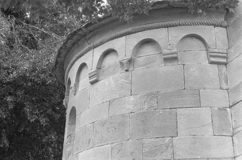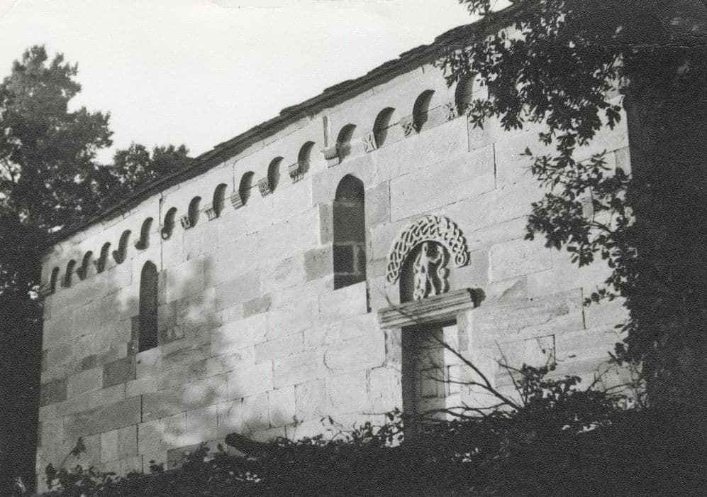 Chapelle romane rectangulaire avec abside semi-circulaire voûtée en cul de four. Linteaux, tymapns et archivoltes sculptés (Adam et Eve...) de manière archaïque. Datée du 13e siècle, la chapelle a probablement été remaniée vers 1453-1496. A l'intérieur, fresques du 15e siècle dans le cul de four et sur l'arc triomphal.