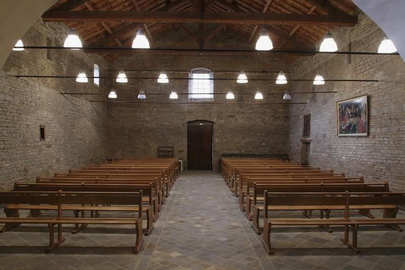 L'édifice se compose de deux parties différentes. La première est une construction romane, sans doute débutée au 11e siècle et achevée progressivement au 12e siècle. La deuxième est constituée par le sanctuaire. Deux piliers passifs, de forme pentagonale, supportent une arcade en plein cintre. Sous l'arcade se trouvent trois autels correspondant à trois absides extérieures.