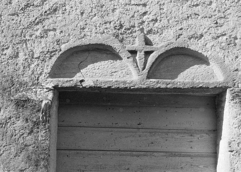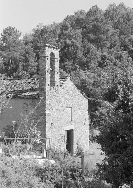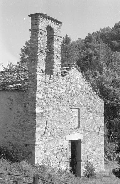 Chapelle à nef unique, et abside semi-circulaire orientée vers le nord-est. L'appareil est irrégulier en petites pierres de schiste vert, les angles sont renforcés de dalles taillées. La porte latérale sud comporte un linteau décoré d'une croix en relief cantonnée de deux arcs en plein cintre en forme de tore. Murs et frontons ont été surélevés, et un clocheton construit, à une époque tardive. L'intérieur a conservé un décor de fresques.