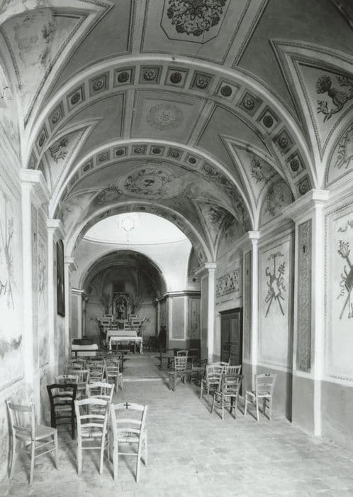 Eglise baroque de plan cruciforme construite au 17e siècle (nef) et modifiée au 18e par la mise en place du choeur et de la coupole à la croisée du transept. De tracé ovale à l'intérieur, la coupole se compose extérieurement d'un tambour octogonal surmonté d'un lanternon circulaire, tous deux éclairés par quatre baies cintrées et tous deux contrebutés par des ailerons en forme de consoles renversées. La nef est couverte d'une voûte peinte. Les bras du transept abritent deux chapelles latérales au décor peint. L'édifice se termine par un chevet plat. Au sud-est se trouve un clocher trapu à deux étages carrés, surmonté d'un lanternon cylindrique.