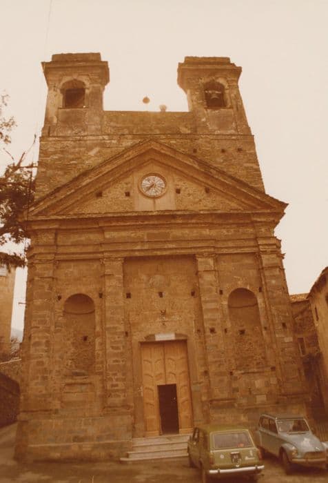 La construction de l'église a commencé en 1777, et a réutilisé des pierres vertes provenant de la démolition de l'ancien édifice. La façade principale s'ouvre par une porte encadrée de deux niches concaves comprises entre deux contreforts. Au-dessus de la porte, pris dans la maçonnerie, se trouve un tympan semi-circulaire, décoré d'une sculpture traitée en plat relief provenant de Sant'Andrea Vecchio. Ce premier niveau est surmonté d'un fronton triangulaire coiffé par deux tours-clochers. L'intérieur de style baroque comprend une nef et des chapelles latérales. Le plafond et le choeur sont ornés de fresques.