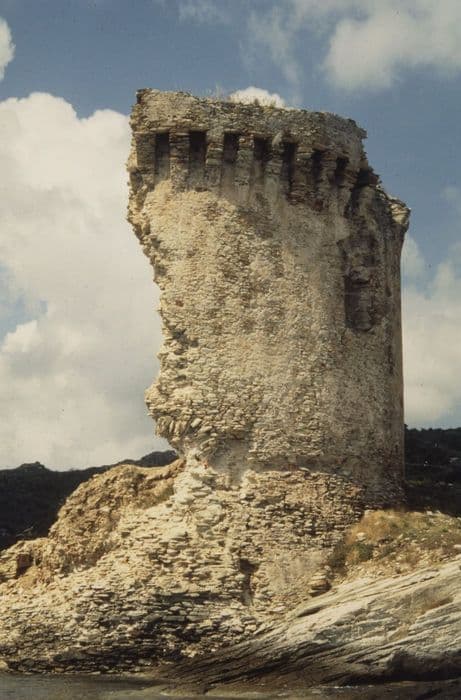 Tour édifiée en 1553 et fortifiée en 1554, pendant la guerre de Corse, par l'amiral Andrea Doria. Cette tour est la seule de l'ensemble du littoral des Agriates existant, non seulement de nos jours mais également aux 17e et 18e siècles. En raison de son importance stratégique (face à l'entrée du golfe de Saint-Florent) , les autorités génoises lui attribuèrent une garnison tournante payée par la Camera. Elle assurait également le rôle de poste de douane. Dans la seconde moitié du 18e siècle, une série d'évènements sont à l'origine de sa destruction. En 1760, Pascal Paoli fit tirer sur la tour. En 1793, les Anglais s'en emparèrent. En 1794, reprise par les Français, la tour fut à nouveau attaquée par les Anglais qui s'en emparèrent. L'amiral Nelson aurait demandé à son état major d'en relever les plans comme modèle pour la construction de tours sur les côtes de Grande-Bretagne et d'Irlande.£Actuellement à demi ruinée, la tour circulaire comprenait trois niveaux et une terrasse couronnée de mâchicoulis. Le premier niveau contenait une citerne. L'escalier intérieur qui permettait de passer d'un étage à l'autre, a disparu. Au-dessus du cordon, le mur est construit selon une pente extérieure de 13° reprise, côté intérieur, d'une manière parallèle. Cette pente intérieure correspond à la voûte qui coiffait le premier niveau.