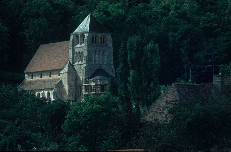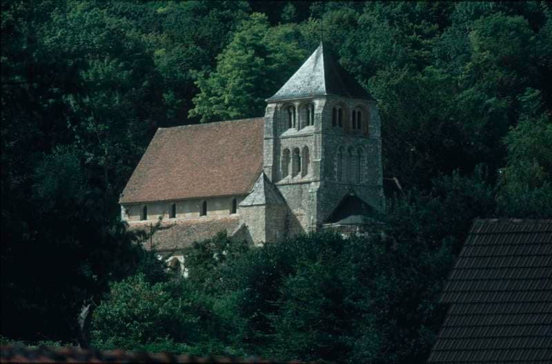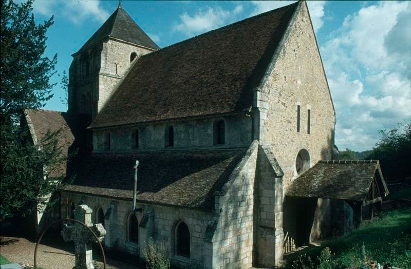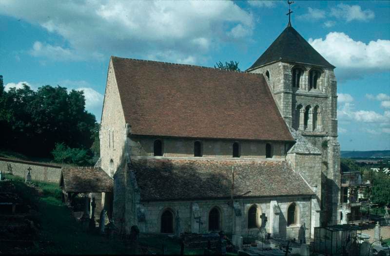 Nef du 12e siècle pour son pignon ouest à appareillage en opus spicatum. La partie restante a été reprise au 13e siècle, avec construction des bas-côtés. Choeur à trois pans coupés. Au nord, la chapelle Saint-Georges (15e siècle) prolonge la nef vers l'est, contre le choeur. Tour-clocher du 12e siècle, remaniée au 15e puis après 1806, prenant sur la travée ouest du choeur. L'accès se fait par une porte à vantaux du 16e siècle.