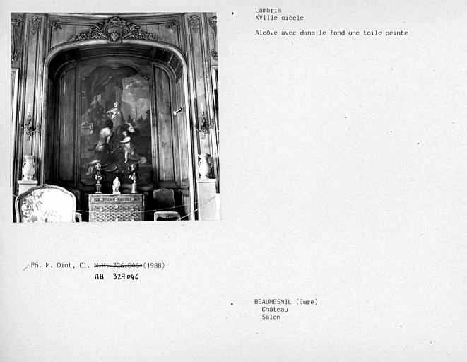 Château, sauf parties classées : inscription par arrêté du 8 mai 1926 - Façades et toitures ainsi que le grand escalier intérieur du château, cour d'honneur, douves, grande perspective du parc et la terrasse lui faisant suite, motte féodale (cad. AI 109 à 111, 186) : classement par arrêté du 20 décembre 1966 - Parc, perspectives, avant-cour, demi-lune, basses-cours, vergers et jardins clos avec leurs aménagements, murs, grilles et portails ; façades et toitures des pavillons d'entrée et des communs (cad. Beaumesnil AI 103 à 105, 107, 109 à 115, 117, 185 à 187, 241, 242 ; ZH 14, 16, 17, 20, 25 à 32 ; Gouttières ZD 37, 38) : inscription par arrêté du 5 février 1997