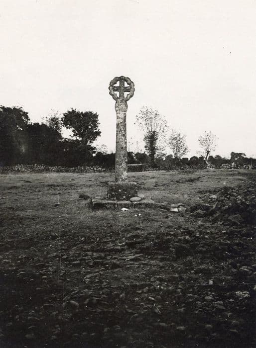 Croix de granit caractéristique de la région avec son entourage ajouré.