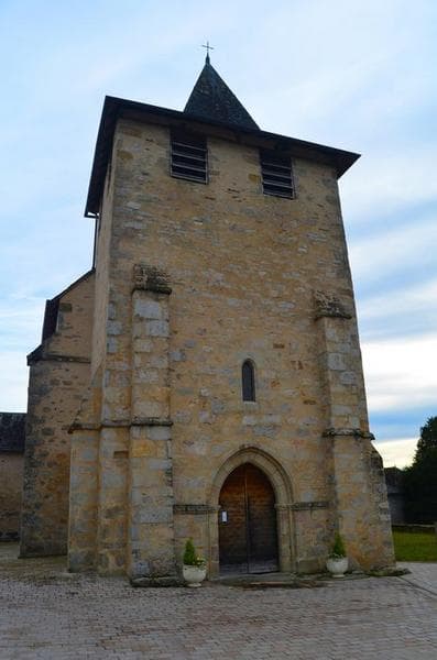 Au 13e siècle, la paroisse dépendait de l'abbaye de Beaulieu-sur-Dordogne. Petite église romane, voûtée en berceau, avec une abside en cul-de-four. Plan en croix avec nef à trois travées voûtées en berceau sur arcs doubleaux. Choeur semi-circulaire voûté en cul-de-four sur arcs plein cintre reposant sur des colonnettes. Clocher et porche du 12e siècle. Chapiteaux sculptés feuillurés et historiés à personnages et animaux. A l'extérieur du choeur, mascarons à figures.