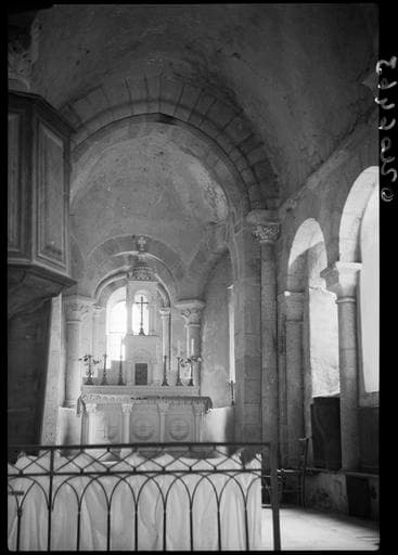 L'église se compose de deux parties bien distinctes : 12e-13e siècle et 15e siècle. Le choeur date du 12e et se compose d'une abside à cinq pans extérieurement et circulaire à l'intérieur, voûtée en cul-de-four, ainsi que d'une double travée rectangulaire voûtée en berceau. Ces voûtes reposent sur des arcatures très saillantes supportées par des colonnes dégagées. Les chapiteaux sont ornés de feuillages. La fenêtre centrale de l'abside est ornée d'un gros tore reposant sur deux colonnettes dont les chapiteaux sont du même style. Le choeur et l'abside sont ornés d'une corniche à modillons entre lesquels sont placés un cuble de pierre surmonté d'un linteau laissant ainsi deux ouvertures carrées vides servant à aérer la charpente et permettant l'écoulement des eaux qui pourraient, en cas de fuite, s'écouler sur les voûtes. La nef, la façade et le clocher-mur sont du 13e siècle. Au 15e siècle, l'église fut remaniée et voûtée. Les piliers, leurs bases prismatiques, les nervures des voûtes et les clefs sont de cette époque.