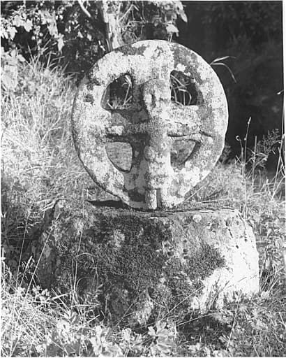 La région du plateau de Millevaches conserve une intéressante série de sculptures naïves, parmi lesquelles les croix de chemin sont particulièrement nombreuses. Cette croix, inscrite dans un cercle, est très différente des autres. Elle est posée sur un soubassement formé d'un bloc de pierre. Elle est entièrement inscrite dans un cercle ajouré, de section carrée, aux angles émoussés. Le montant et les bras, cubiques, s'entrecroisent au centre du cercle qu'ils joignent en formant, dans les intervalles, quatre ajours en quart de cercle. Sur la face nord est sculptée très grossièrement l'effigie du Christ crucifié. La tête, dont les traits sont à peine visibles, est dans la proportion du 1/3 de celle du corps. Il est vêtu d'une longue robe descendant jusqu'à mi jambe. La croix peut être d'époque romane ou être plus récente s'il s'agit d'une reprise de techniques anciennes.