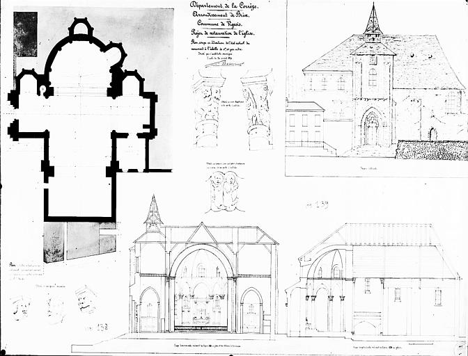 L'origine de cette église remonterait à la naissance du christianisme. Un premier édifice fut ravagé par les invasions barbares. Les ruines servirent de retraite à un solitaire nommé Sébastien. Vers le 8e siècle, un incendie détruit l'édifice qui fut réédifié par Pierre de Mirabec. Vers l'an 1050, Archambault de Comborn s'empara de l'abbaye et de l'église qu'il incendia. Prit de remords, il fit rebâtir cette dernière. L'église subit des mutilations durant les guerres de Cent ans puis de Religion. Il ne reste rien aujourd'hui de l'abbaye. La nef de l'église a été rebâtie de 1866 à 1868.