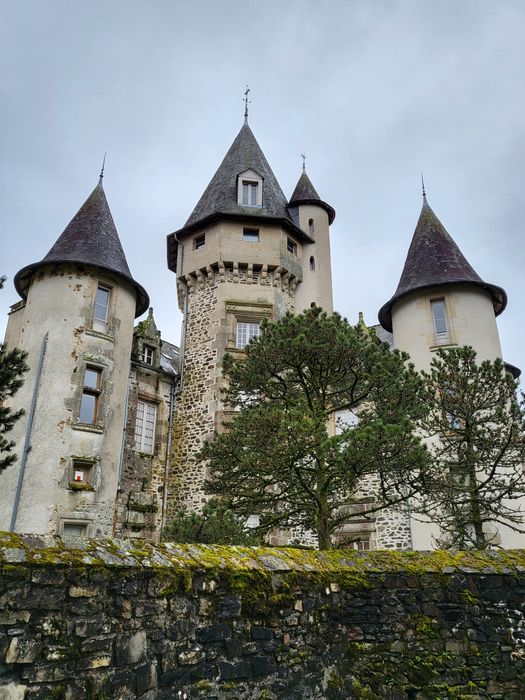 Une châtellenie existait dès le début du 12e siècle. La tour a dû être bâtie fin 13e début 14e siècle. Pendant les guerres de Religion, en 1586, le château fut démoli puis reconstruit. Pendant la Révolution, le château fut dévasté en 1792, puis exploité comme carrière de pierres. Si le rez-de-chaussée conserve des structures médiévales et la tour sud une coupole médiévale, les autres parties du château furent rhabillées au début du 19e siècle dans un style d'inspiration Renaissance pour la façade sud-ouest et 19e siècle pour la façade sud-est. La tour est polygonale avec des ouvertures Renaissance. La porte est cantonnée de pilastres avec chapiteaux et corniches moulurés. Au-dessus de la corniche, sont sculptés des chapiteaux ornés de volutes. Le chemin de ronde et les mâchicoulis ne sont pas d'origine. Prenant appui sur le mur à l'ouest de la tour se trouve une tourelle en échauguette abritant un escalier à vis qui menait à l'ancien chemin de ronde. La tour sud est voûtée, au rez-de-chaussée, d'une coupole médiévale. L'escalier à double révolution a été bâti après la Première guerre mondiale.