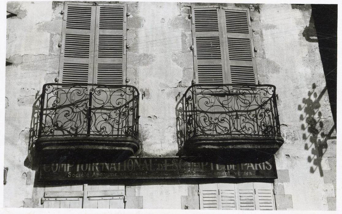Les balcons en fer forgé Louis XV au premier étage (cad. A 40) : inscription par arrêté du 28 octobre 1963