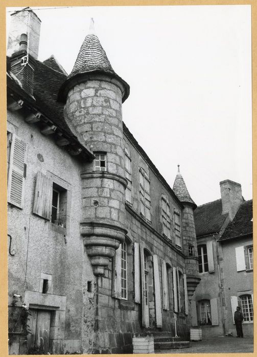 Façades et toitures sur la rue de la Cure (bâtiment à tourelles et bâtiment d'escalier) ; les cheminées et le décor des deux salles du rez-de-chaussée (cad. AI 147) : inscription par arrêté du 22 décembre 1986