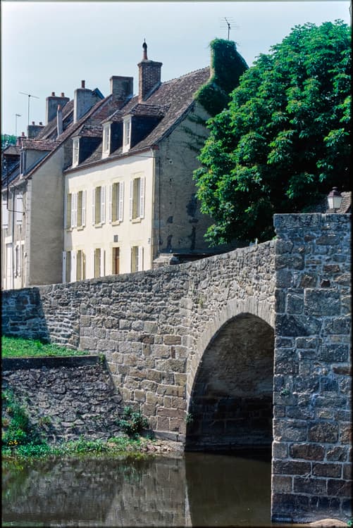 Pont mesurant une quarantaine de mètres de long, composé de trois arches. Celle de l'est, plus petite, décrit un arc légèrement brisé. Les deux autres sont en ellipse, avec une légère brisure à la clé. Celle du milieu est un peu plus large et plus haute, entraînant une légère brisure du tablier. Des éperons triangulaires flanquent les piles en amont et en aval. Ils sont élevés jusqu'à la chaussée où ils forment de petites gares d'évitement. Le parapet a été modifié à l'extrémité Est par la construction d'un escalier moderne menant à la berge. L'ouvrage a sans doute été fortifié car la ville était défendue par des remparts démolis avant la fin du 18e siècle. L'un des avant-becs conserve l'emplacement d'une croix, vraisemblablement détruite à la Révolution. C'est par ce pont que Charles VII fit sont entrée dans la ville après sa prise, la ville soutenant le futur Louis XI, en révolte contre son père.