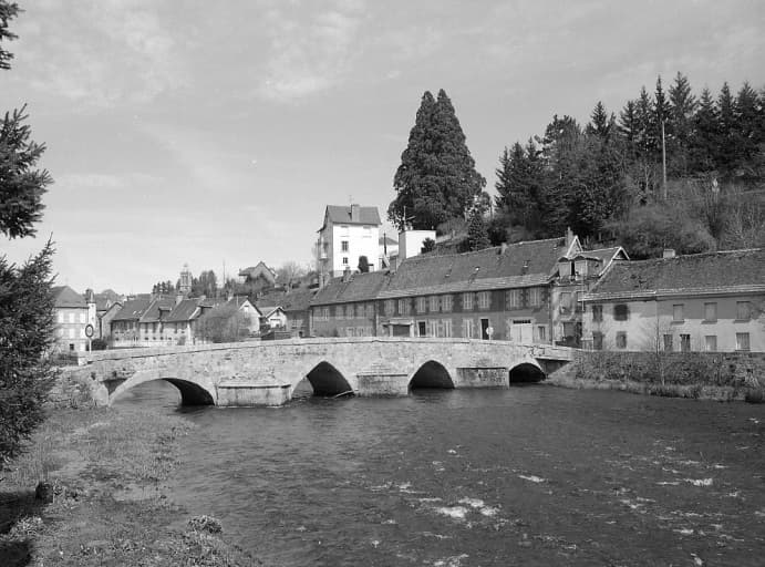 Quatre arches, celles des extrémités en plein cintre, les deux autres en arc brisé. En 1447, le pont s'appelait pont sombre, puis il prit le nom d'un industriel dont la fabrique était proche.