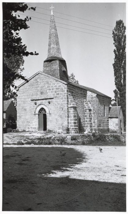Le portail qui ouvre sur la façade Est, en tracé brisé, est flanqué de deux colonnettes dont les chapiteaux ornés de masques, sont continués par une frise de feuillage. Le clocher s'élève sur la partie ouest de la nef. Il est en charpente, entièrement recouvert de bardeaux. A l'intérieur, berceau de bois. L'église date du 14e siècle, avec quelques restaurations au 18e. Le clocher date du 18e siècle.