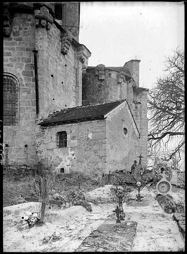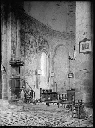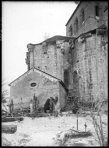 Eglise conventuelle du 11e siècle, ruinée en partie au 15e siècle et de laquelle il ne reste que le choeur, le transept, deux chapelles absidiales ouvrant sur le transept. La croisée est voûtée en coupole portée sur pendentifs ; le transept en berceau ; le choeur et les chapelles en cul de four. Les quatre arcs doubleaux soutenant la coupole portent un clocher à un étage carré, dont chaque face est percée de trois baies en plein cintre. L'église était fortifiée. Des vestiges de ces fortifications se voient sur la partie supérieure des murs de l'abside et des chapelles absidiales. Ils consistent en fortes consoles naissant de têtes humaines, qui supportaient autrefois des parapets. Les chapelles absidiales étaient reliées à la chapelle centrale par un arceau également porté par des consoles.