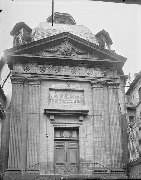 La communauté des Visitandines s'installa sur cet emplacement en 1643. La démolition de certains bâtiments vétustes, leur reconstruction et des embellissements furent entrepris vers 1770. La nouvelle chapelle, commencée en 1771, fut consacrée en 1775. Elle servit successivement de prison, dépôt, salle de réunion, magasin d'intendance. La chapelle est séparée de la rue par un large perron à double révolution, à paliers intermédiaires sur lesquels s'ouvraient les deux entrées du couvent. La façade est percée d'une porte encadrée de pilastres doriques cannelés, supportant un entablement surmonté d'un fronton triangulaire dont le tympan porte l'insigne de la communauté. La chapelle, de plan circulaire, est prolongée par un sanctuaire. Des renfoncements sur les murs de façade et latéraux, amorcent la croix. Quatre niches allègent les murs. Au nord du sanctuaire, le choeur relie l'église au cloître qui a conservé son aspect initial. Trente-deux arcades plein cintre à piliers carrés s'ouvrent sur une cour. Dans une cour secondaire s'ouvre une porte plein cintre semblant appartenir au 17e siècle, encadrée de deux pilastres supportant un fronton triangulaire.