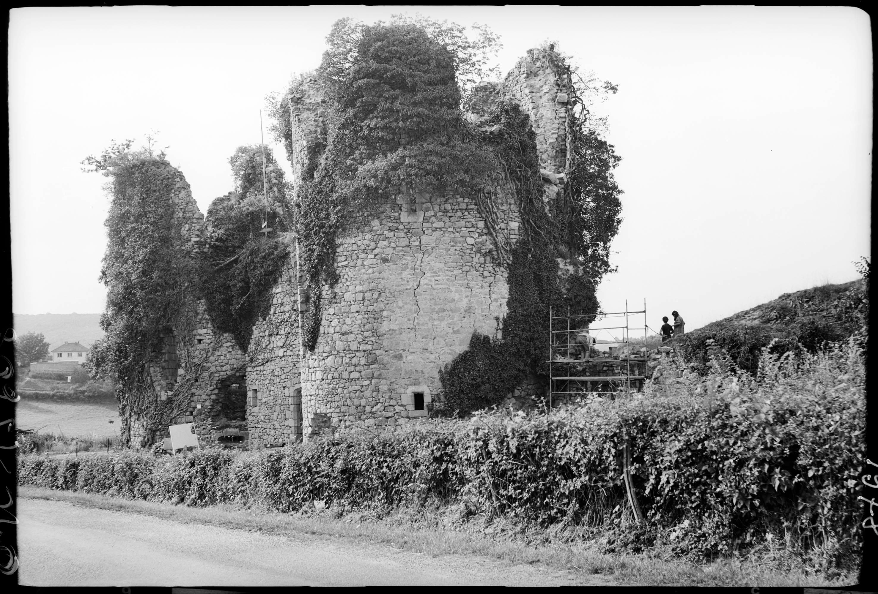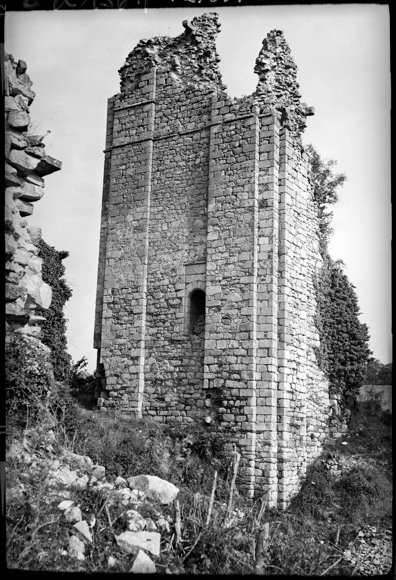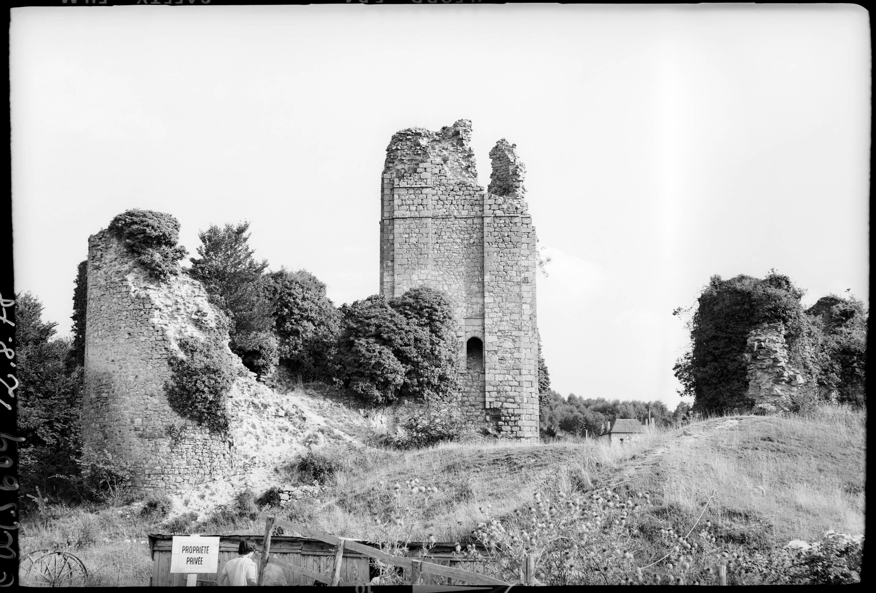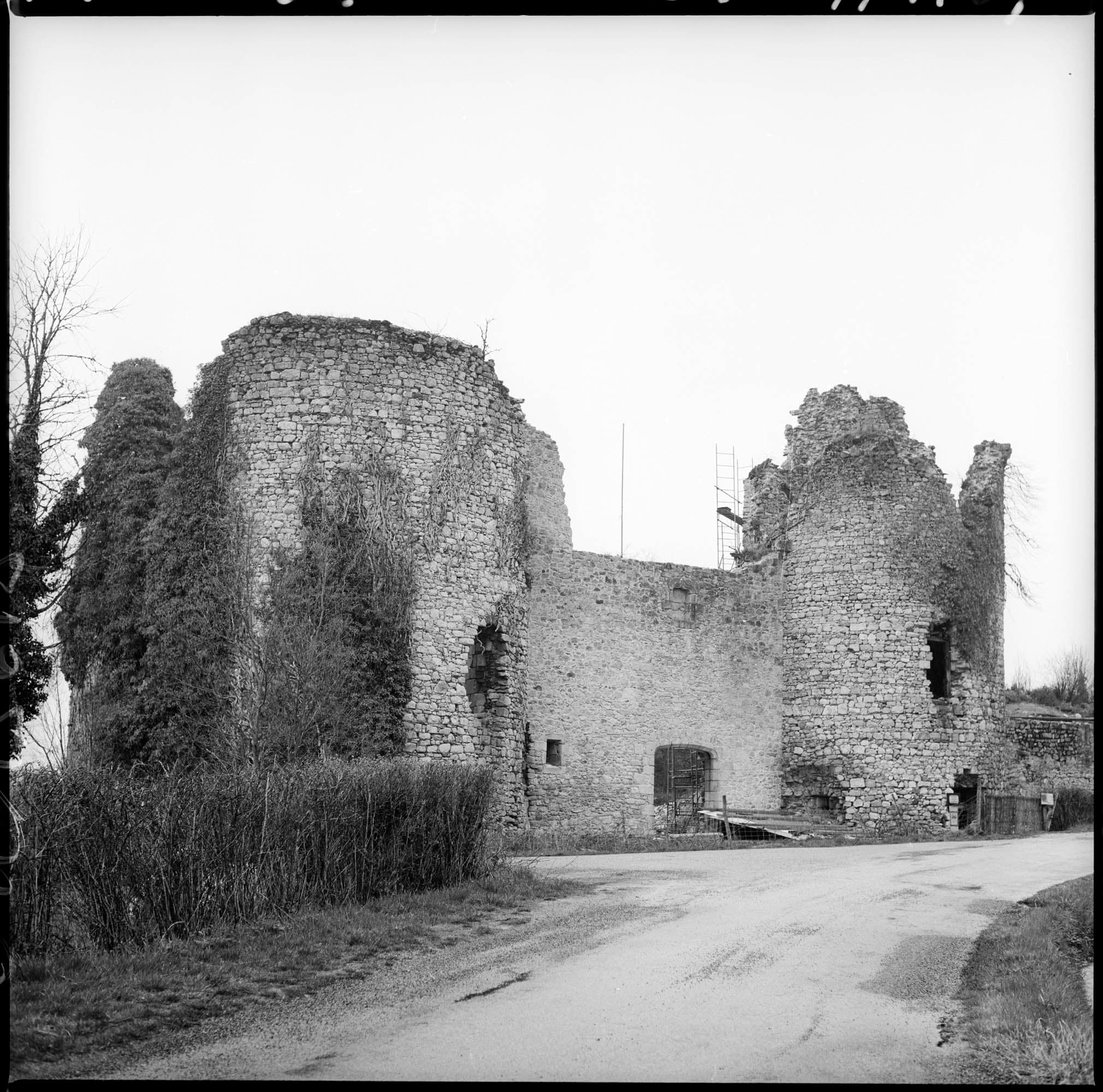 Le plan cadastral réalisé au début du 19e siècle montre un tracé pentagonal composé de quatre tours rondes, d'un donjon à l'est, rattachés par des murs et des défenses à l'ouest. A la Révolution, le château fut pillé puis démoli et servit, au 19e siècle, de carrière de pierres à bâtir. Il subsiste au nord quelques vestiges de la grosse tour ronde et des murailles ; à l'ouest, les murs et tourelles de défense ; au sud, les deux grosses tours rondes encadrant la porte d'entrée, reliées autrefois à des courtines. A l'est, le donjon du 11e siècle se dresse à 26 mètres, sa partie inférieure étant effondrée ainsi que les murs qui le relient au reste du château. Les fossés étaient encore remplis d'eau à la fin du 19e siècle. Le château ancien a peut-être été reconstruit au 13e siècle.