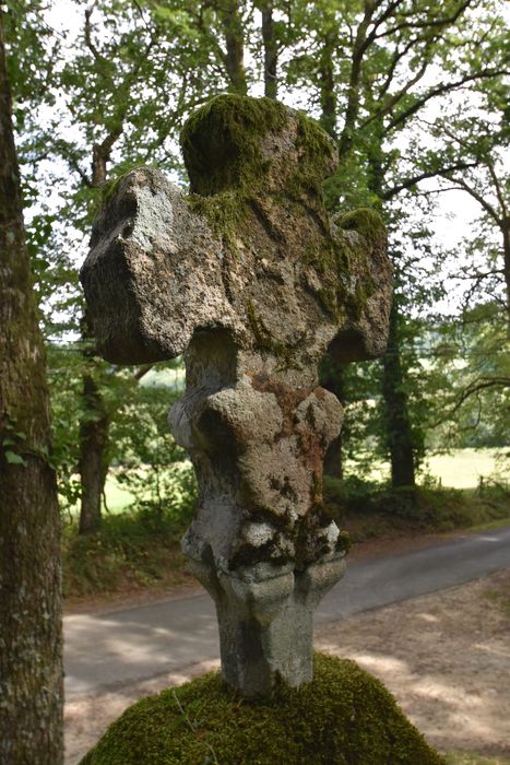 La croix repose sur un piédestal de pierres liées par un mortier récent. Le socle est composé par un bloc de granit taillé. Le fût supporte une croix à trois fleurons portant, sur une face, un Christ en croix, la tête légèrement penchée sur le côté, imberbe, vêtu et légèrement déhanché. Le revers figure, en léger relief, une croix pattée inscrite dans un cercle.