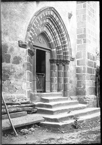 A une première nef fut accolée, au 12e-13e siècle, une seconde dont les voûtes retombent sur des supports sculptés. Voûtes d'arête à nervures. Abside carrée.